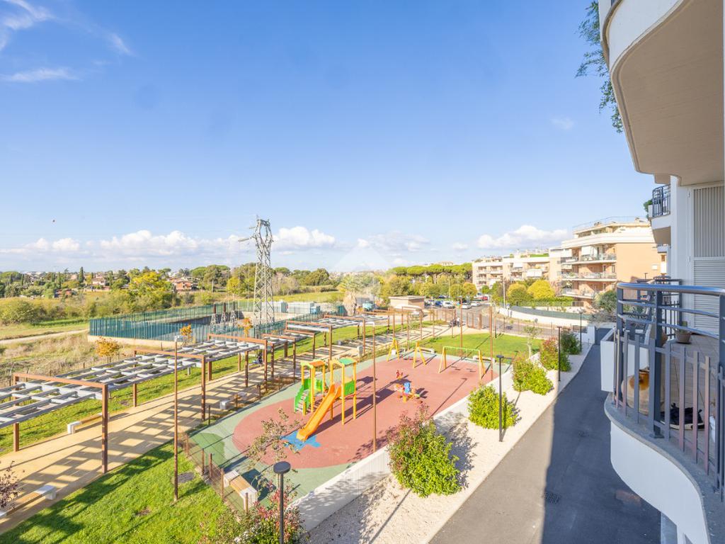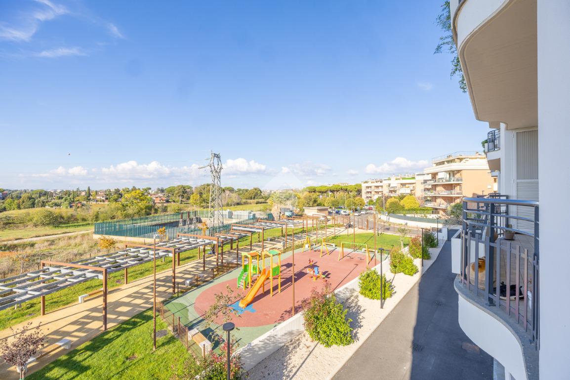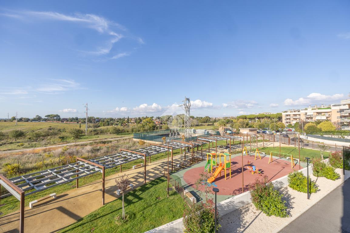 La zona notte, ben distinta, ospita una camera da letto singola, ideale anche come studio o stanza ospiti, un bagno principale completo di doccia e finestra, ed infine una camera matrimoniale di generose dimensioni, dotata di bagno en suite e balcone privato con affaccio sulla nuova piazza di Via Eugenio Maccagnani, caratterizzata da spazi verdi, servizi e un’atmosfera moderna e ben curata.