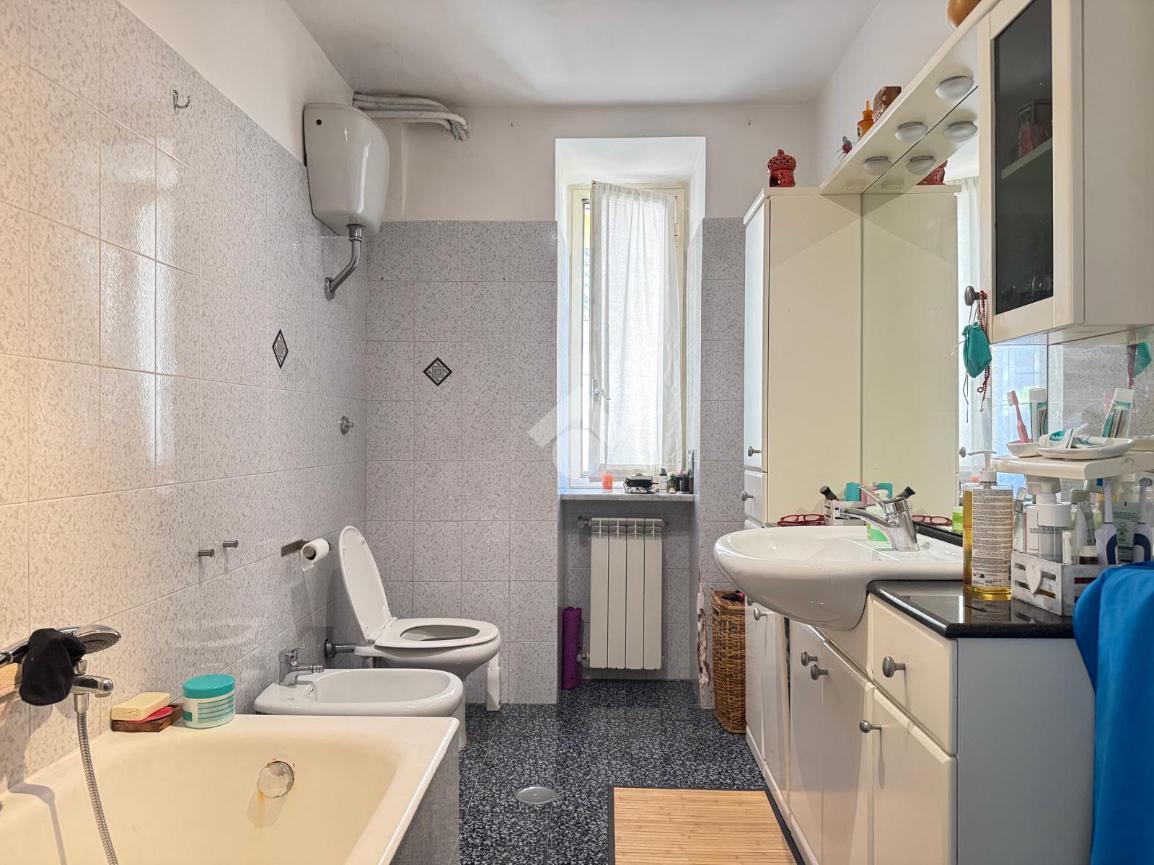 Il bagno, dotato di vasca, è in buono stato manutentivo e offre una disposizione funzionale degli elementi, con la possibilità di valorizzarlo ulteriormente attraverso interventi estetici mirati.
