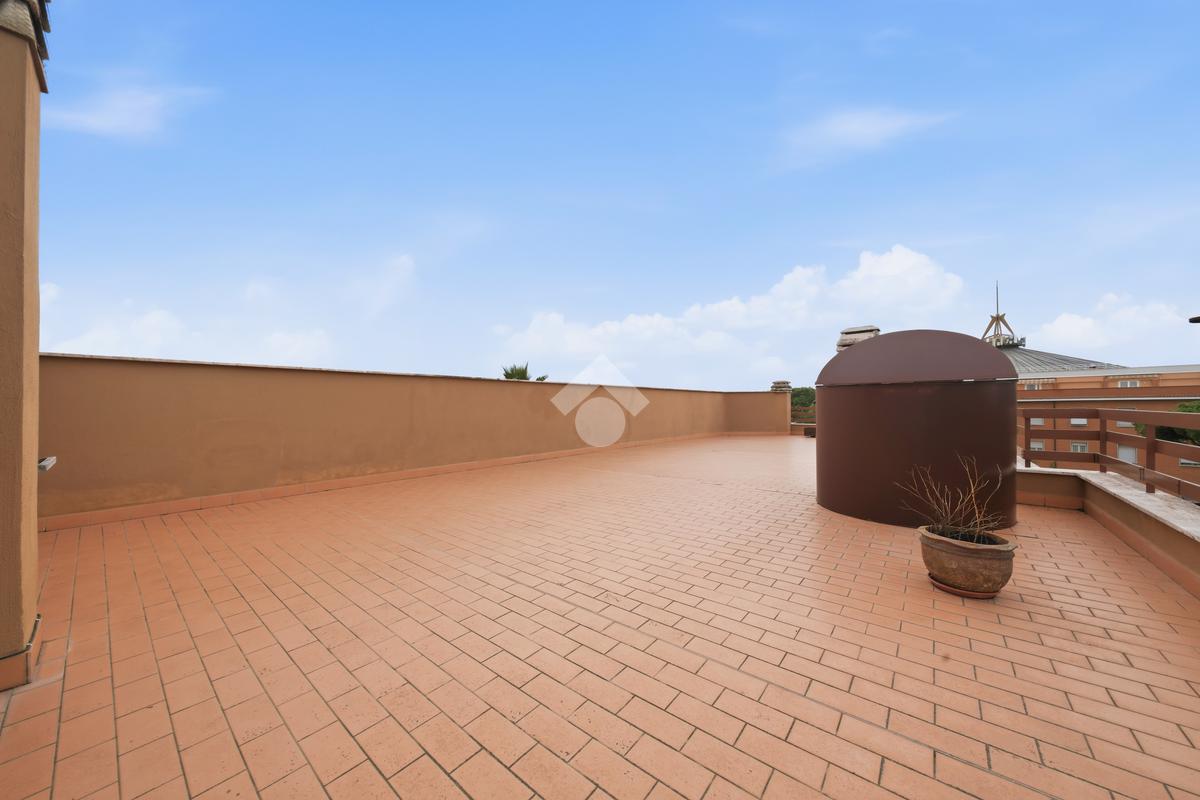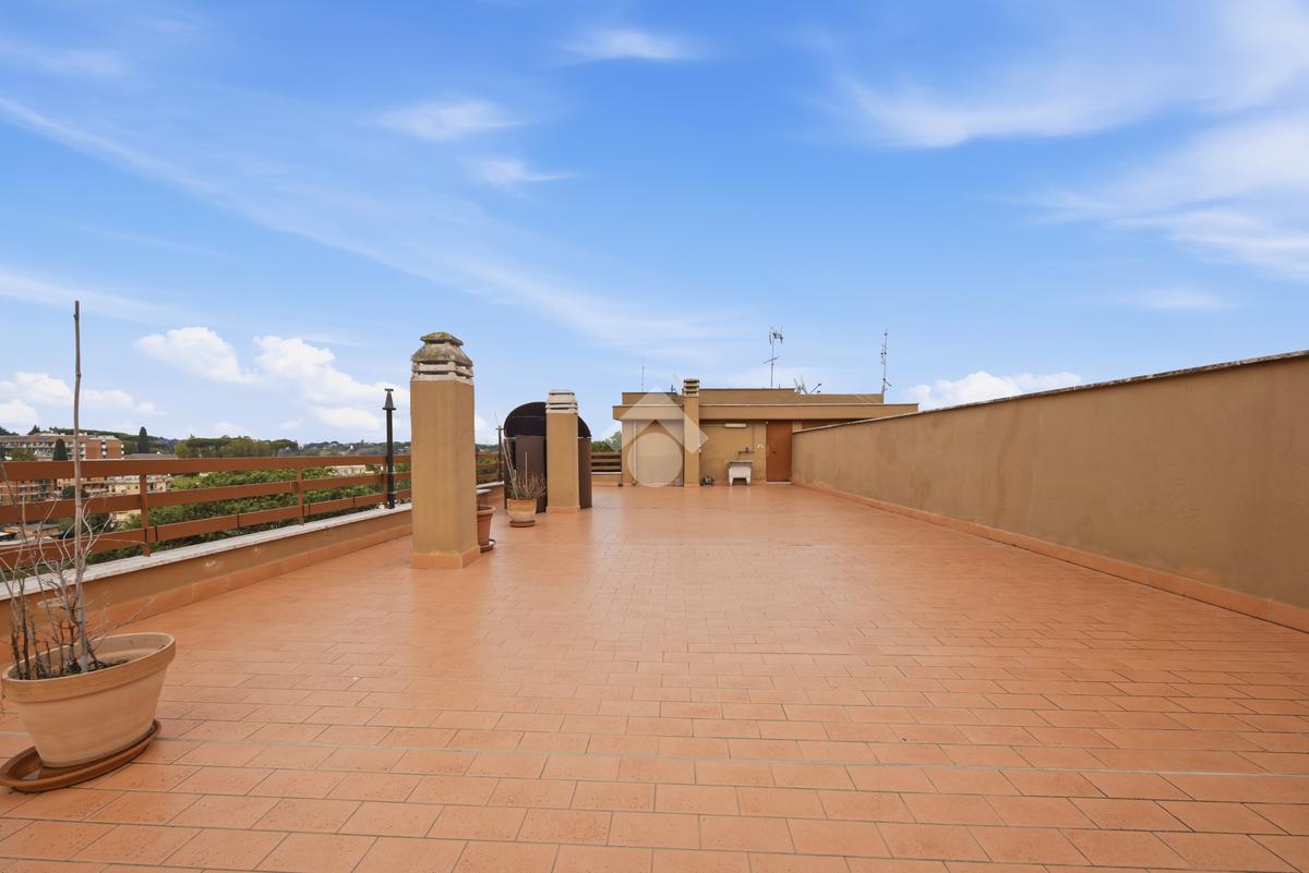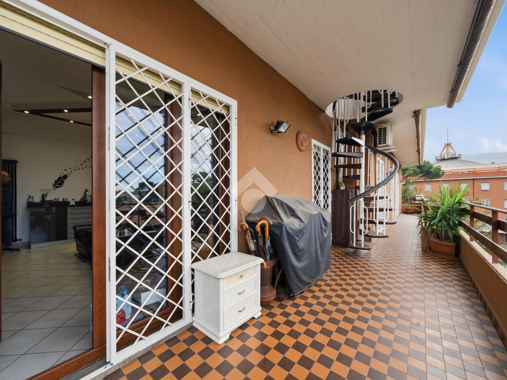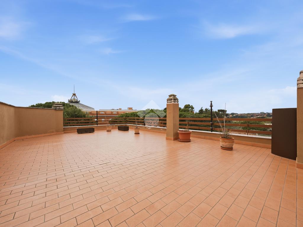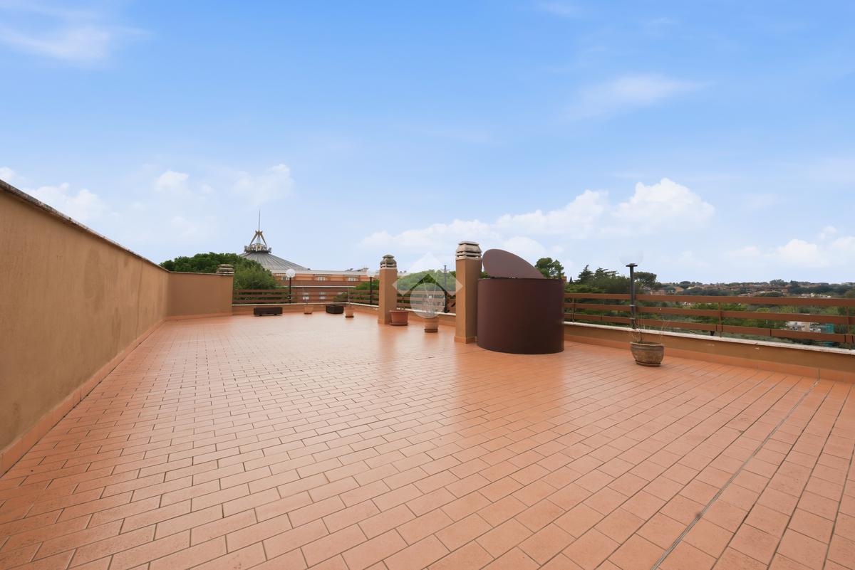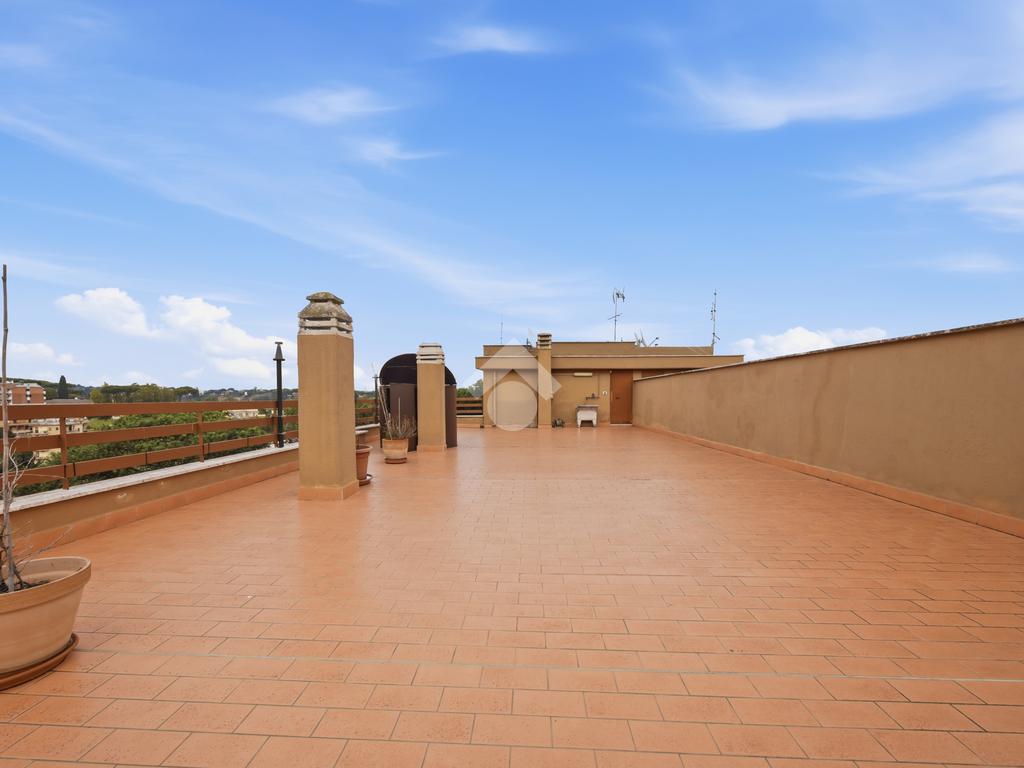 Dal balcone, tramite una scala a chiocciola, si raggiunge la terrazza sovrastante, accessibile anche direttamente dal vano scala. Con i suoi 130 mq rappresenta un ambiente di assoluto pregio e una vera estensione della casa. Grazie alla sua ampiezza e alla privacy garantita dal contesto, può essere trasformata in una zona living all’aperto perfetta per tutte le stagioni. È possibile realizzare una chiusura parziale con vetri a scomparsa per creare un’area attrezzata con cucina esterna, ideale per cene estive, oltre a uno spazio barbecue o all’installazione di una vasca jacuzzi, un dettaglio che trasformerebbe questo luogo in una vera oasi di relax esclusivo.