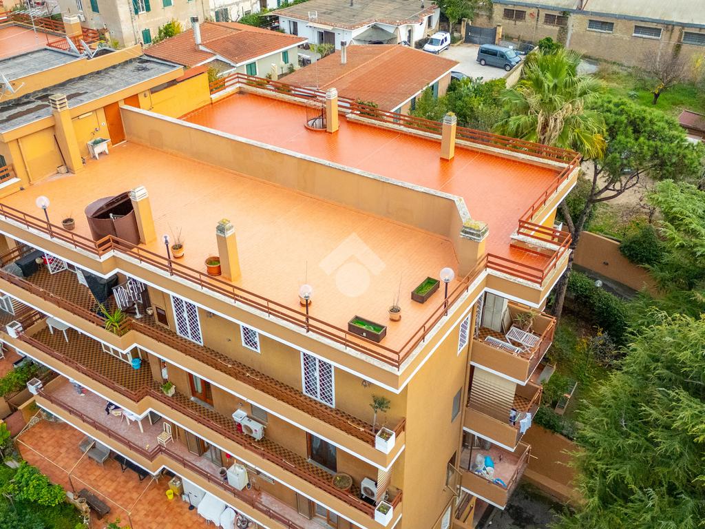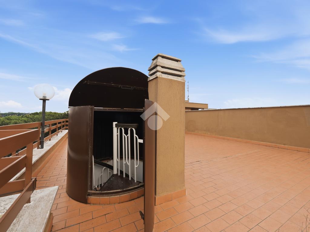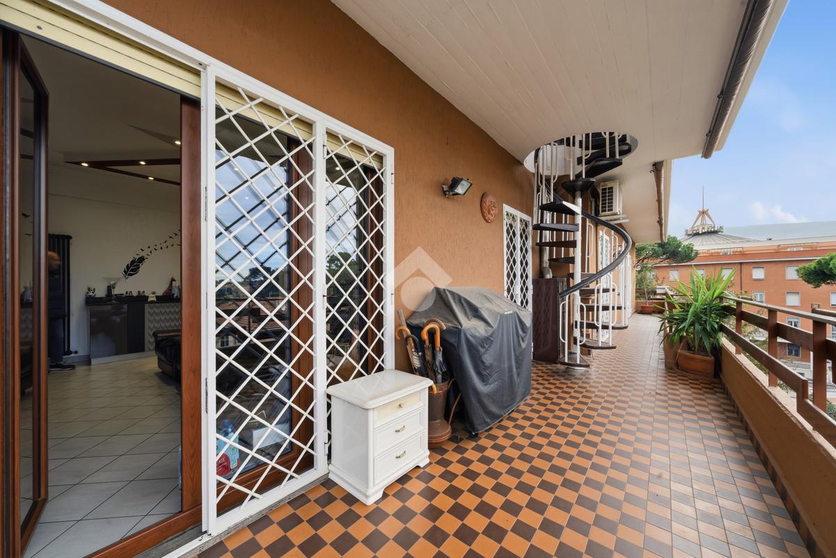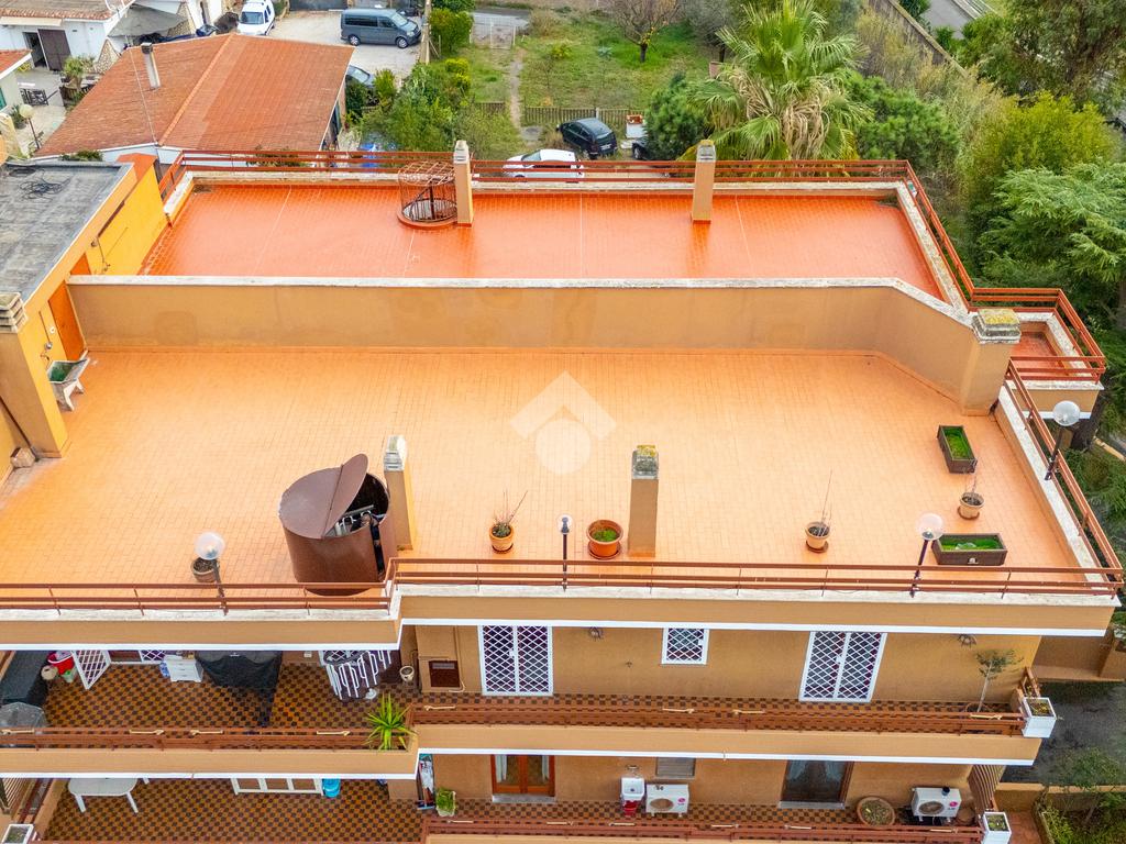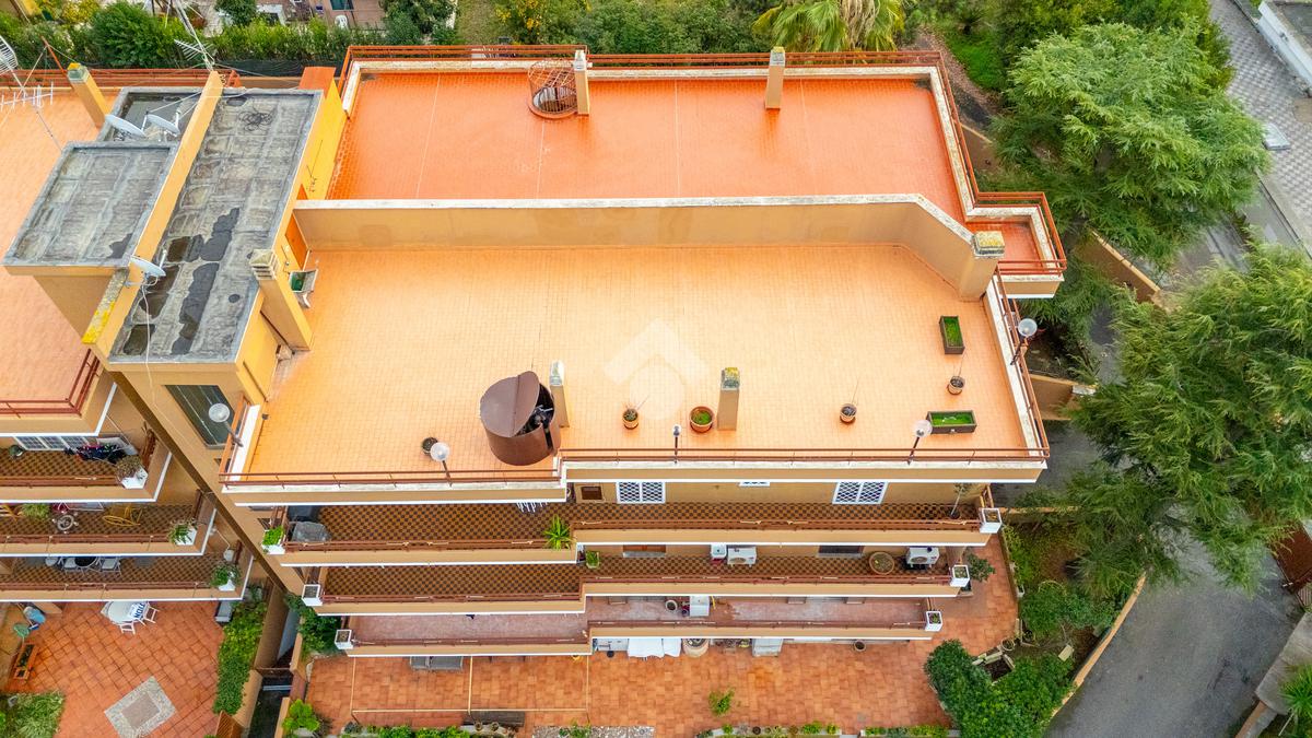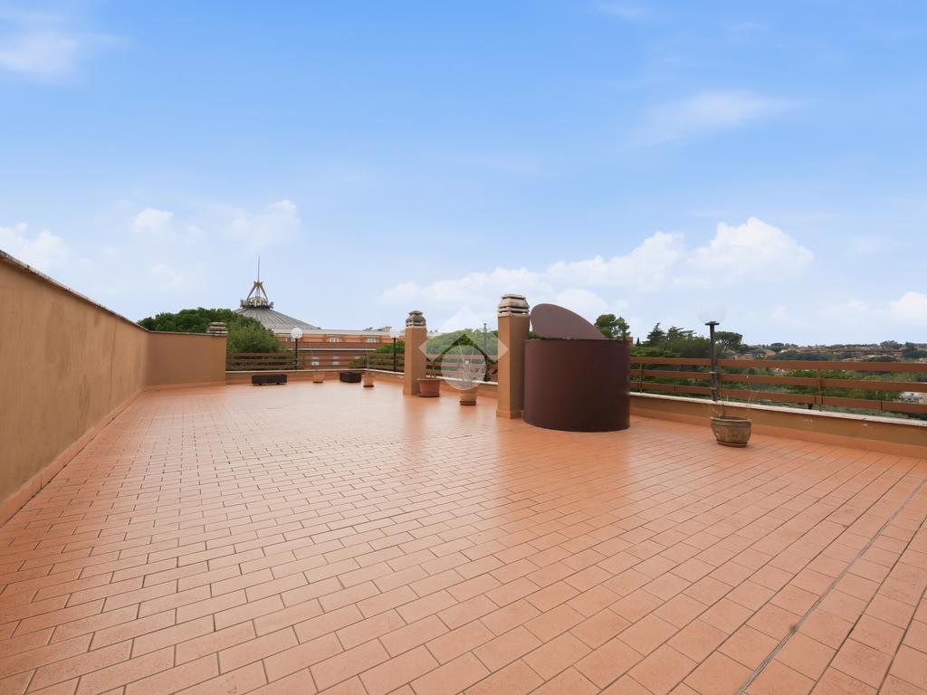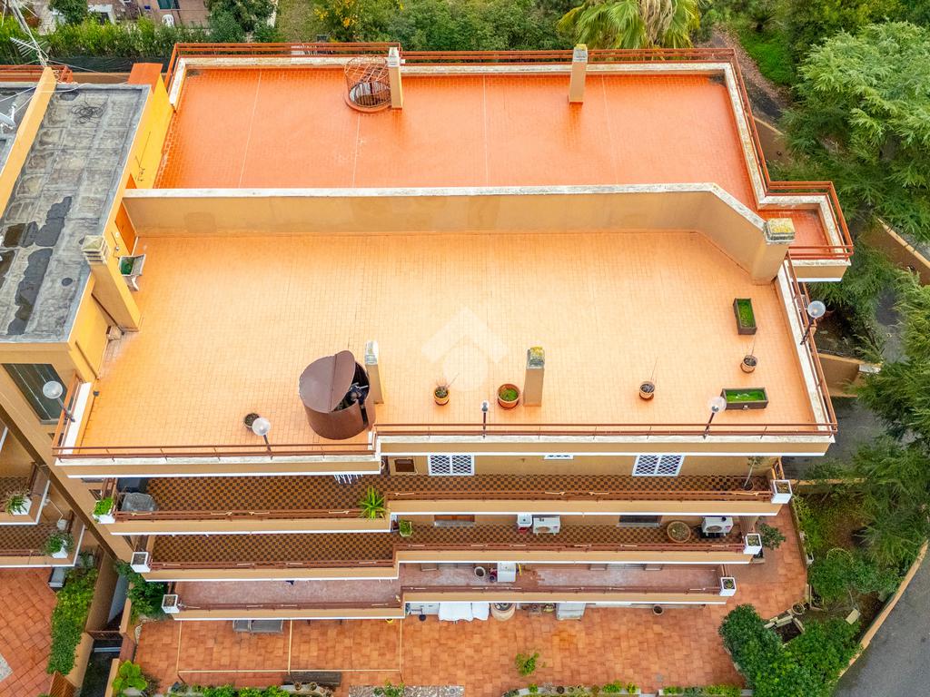 Dal balcone, tramite una scala a chiocciola, si raggiunge la terrazza sovrastante, accessibile anche direttamente dal vano scala. Con i suoi 130 mq rappresenta un ambiente di assoluto pregio e una vera estensione della casa. Grazie alla sua ampiezza e alla privacy garantita dal contesto, può essere trasformata in una zona living all’aperto perfetta per tutte le stagioni. È possibile realizzare una chiusura parziale con vetri a scomparsa per creare un’area attrezzata con cucina esterna, ideale per cene estive, oltre a uno spazio barbecue o all’installazione di una vasca jacuzzi, un dettaglio che trasformerebbe questo luogo in una vera oasi di relax esclusivo.