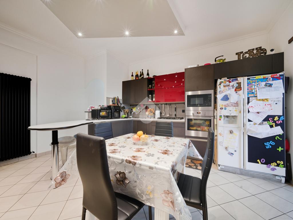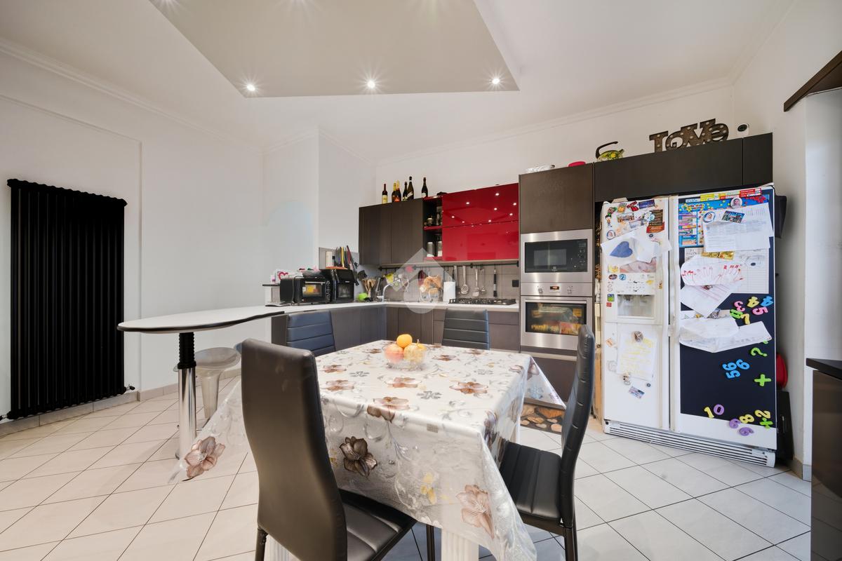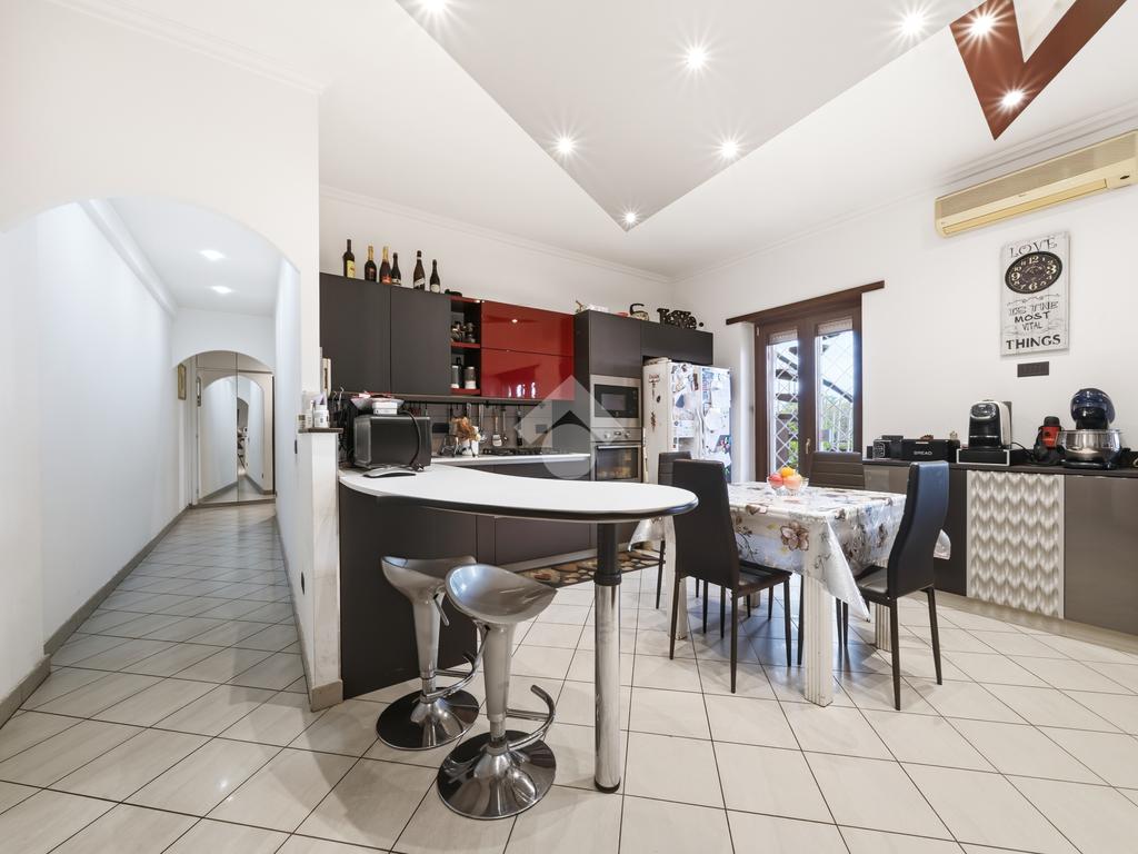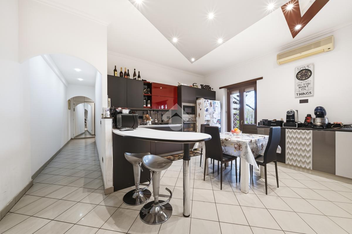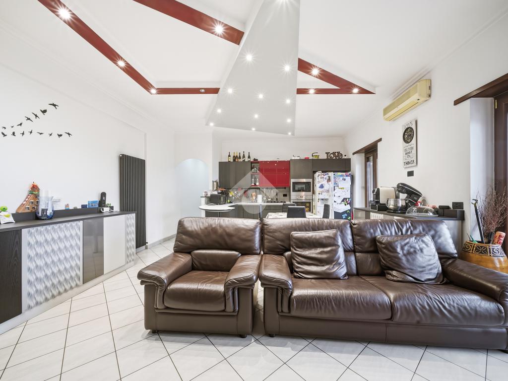 L’appartamento, posto all’ultimo piano e completamente ristrutturato, offre una metratura complessiva di 132 mq. L’ingresso introduce in una zona giorno moderno e accogliente, impreziosito da un elegante controsoffitto con faretti che crea un gioco di profondità e luce.