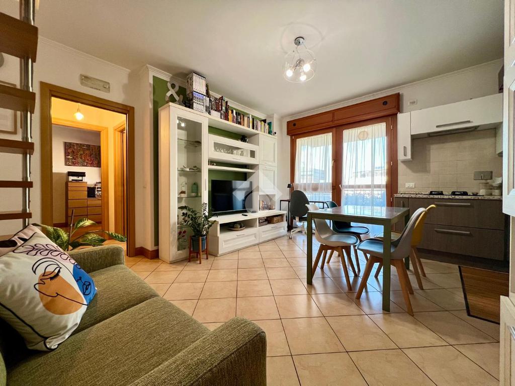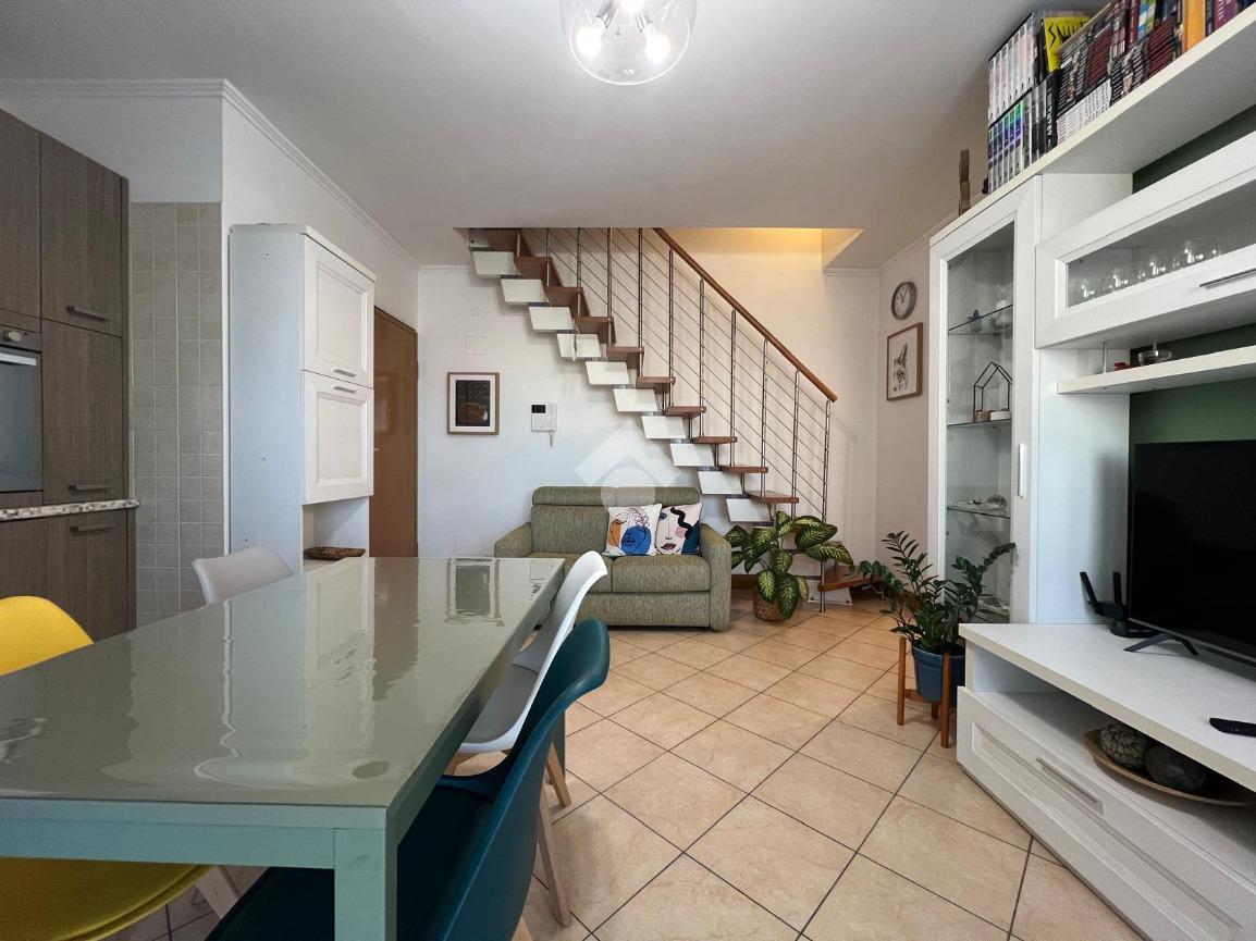 L’immobile si sviluppa su due livelli, posti al terzo e quarto piano, collegati tra loro da una comoda scala in legno dal design caldo ed elegante. L’ingresso si apre direttamente sulla zona living, un ambiente luminoso e ben articolato che ospita il soggiorno e l’angolo cottura. Gli spazi risultano accoglienti, facili da personalizzare e ideali tanto per la quotidianità quanto per momenti di convivialità.