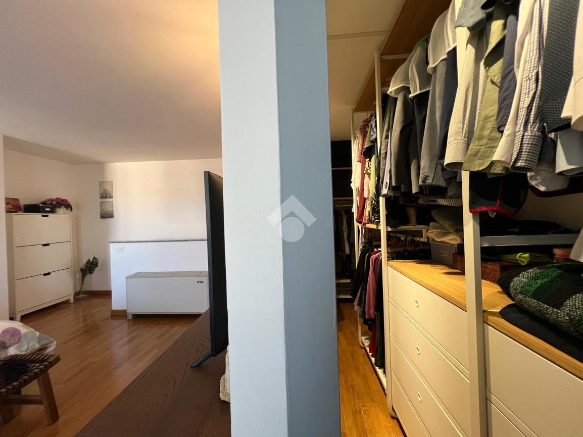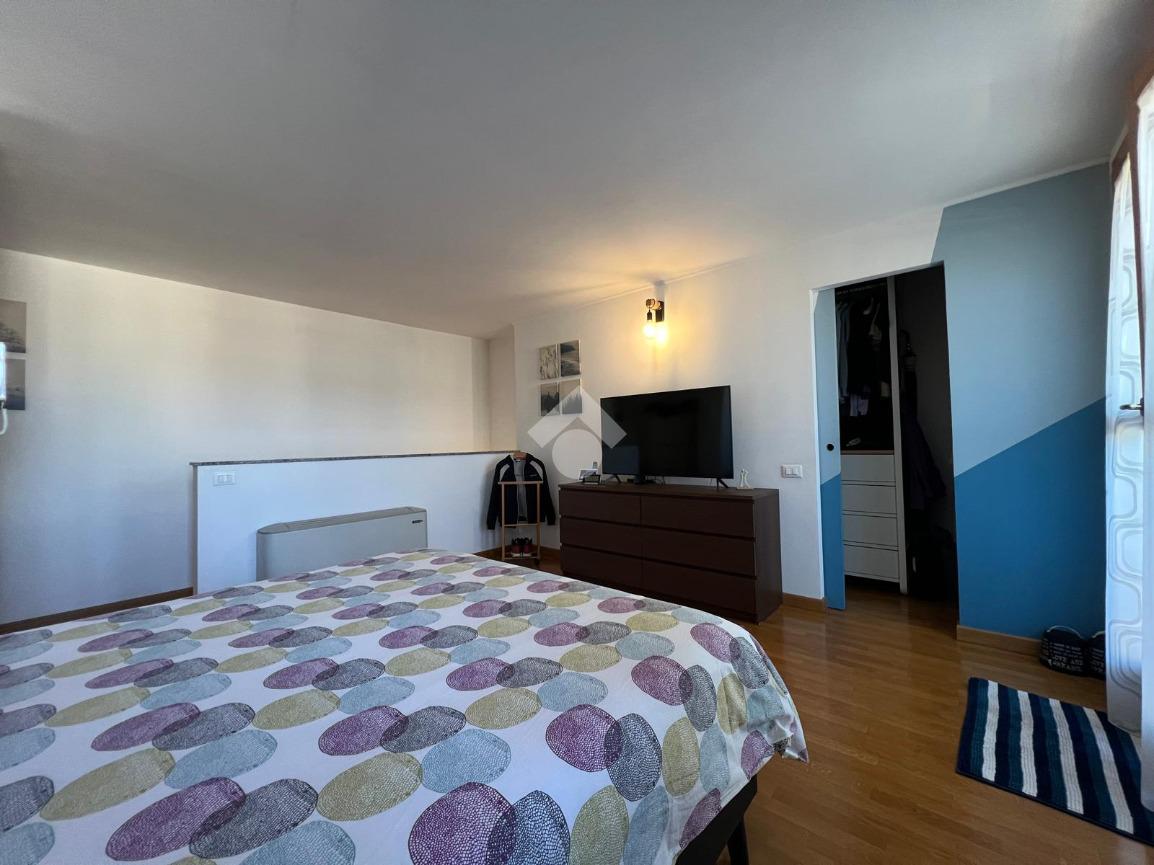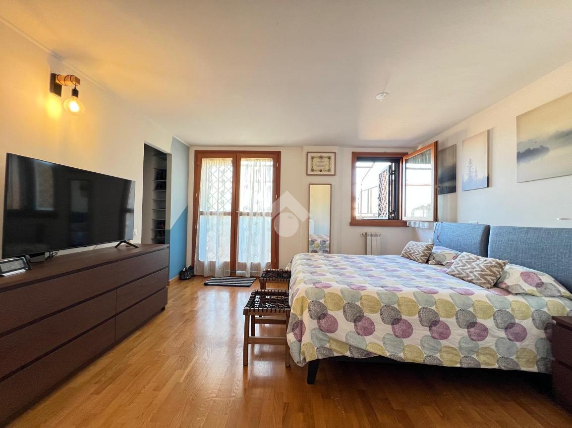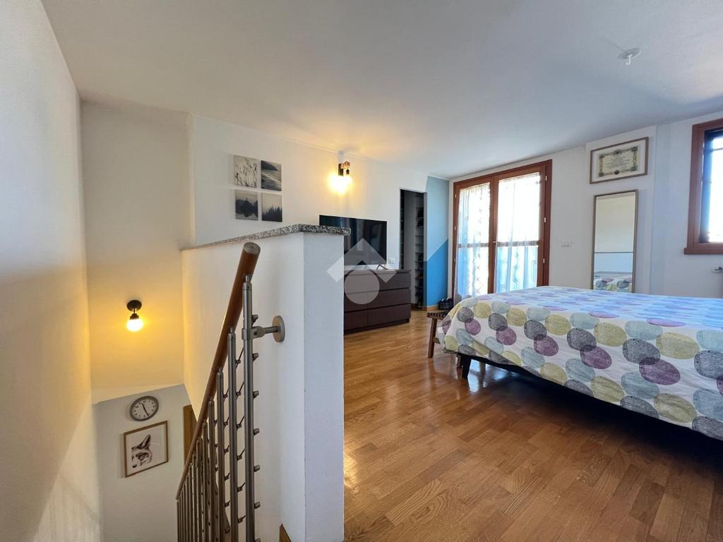 Salendo la scala interna si raggiunge il livello superiore, dedicato alla camera matrimoniale principale. Si tratta di un ambiente che offre una sensazione di comfort con la presenza della cabina armadio che rende la stanza particolarmente funzionale.