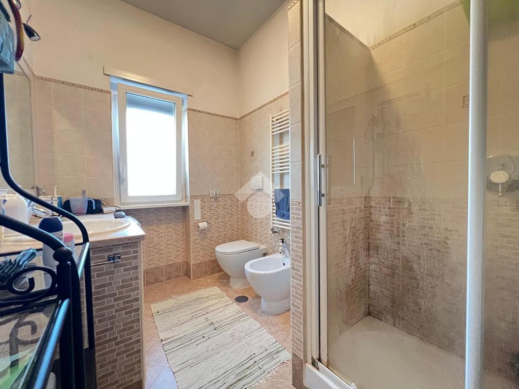 Il bagno, comodo e rifinito con cura, offre spazi perfettamente funzionali e adeguati all’uso quotidiano, con la possibilità di ospitare tutti i principali accessori e complementi necessari.