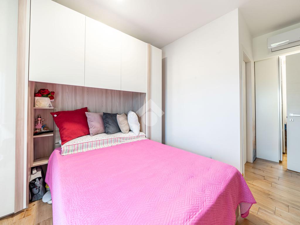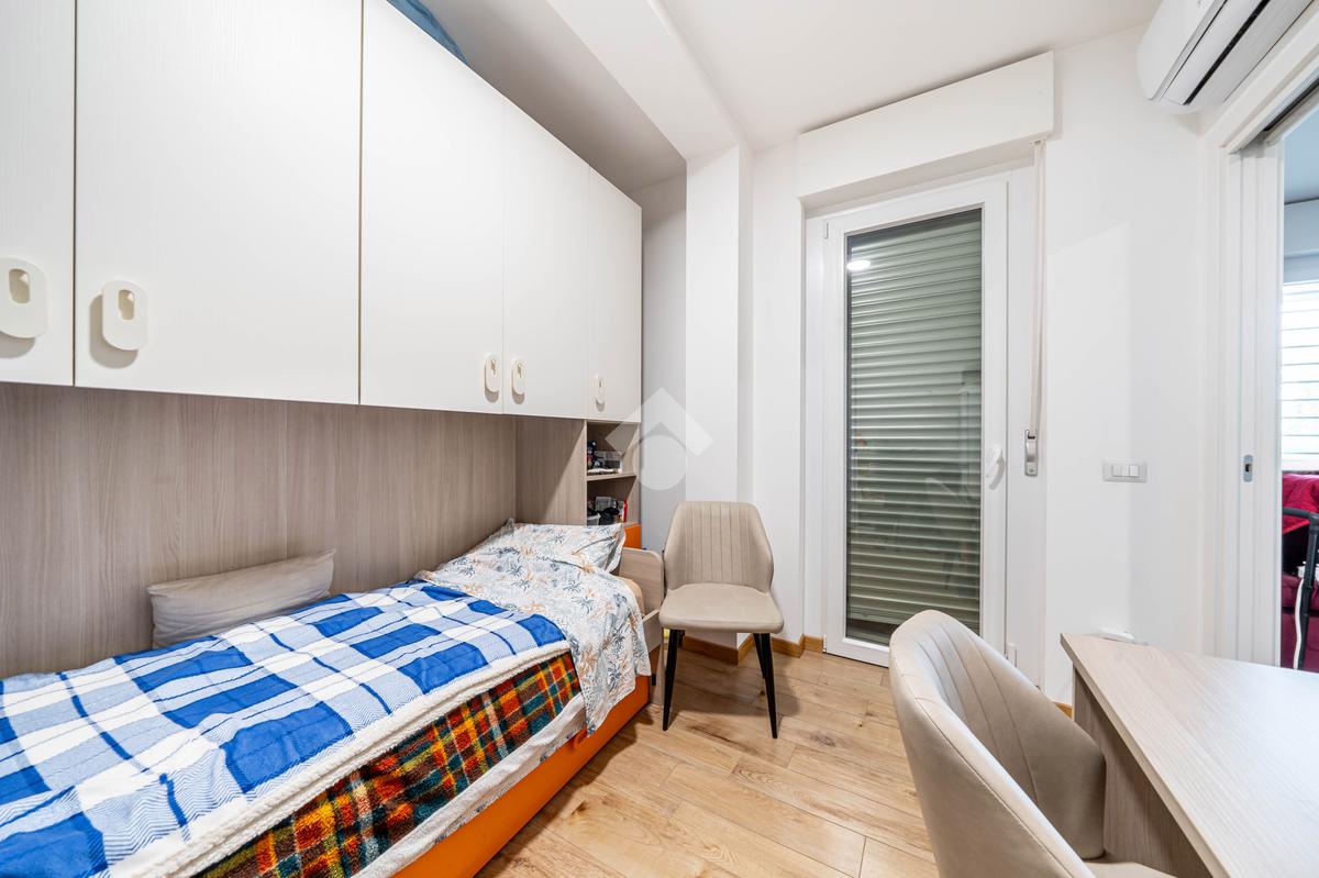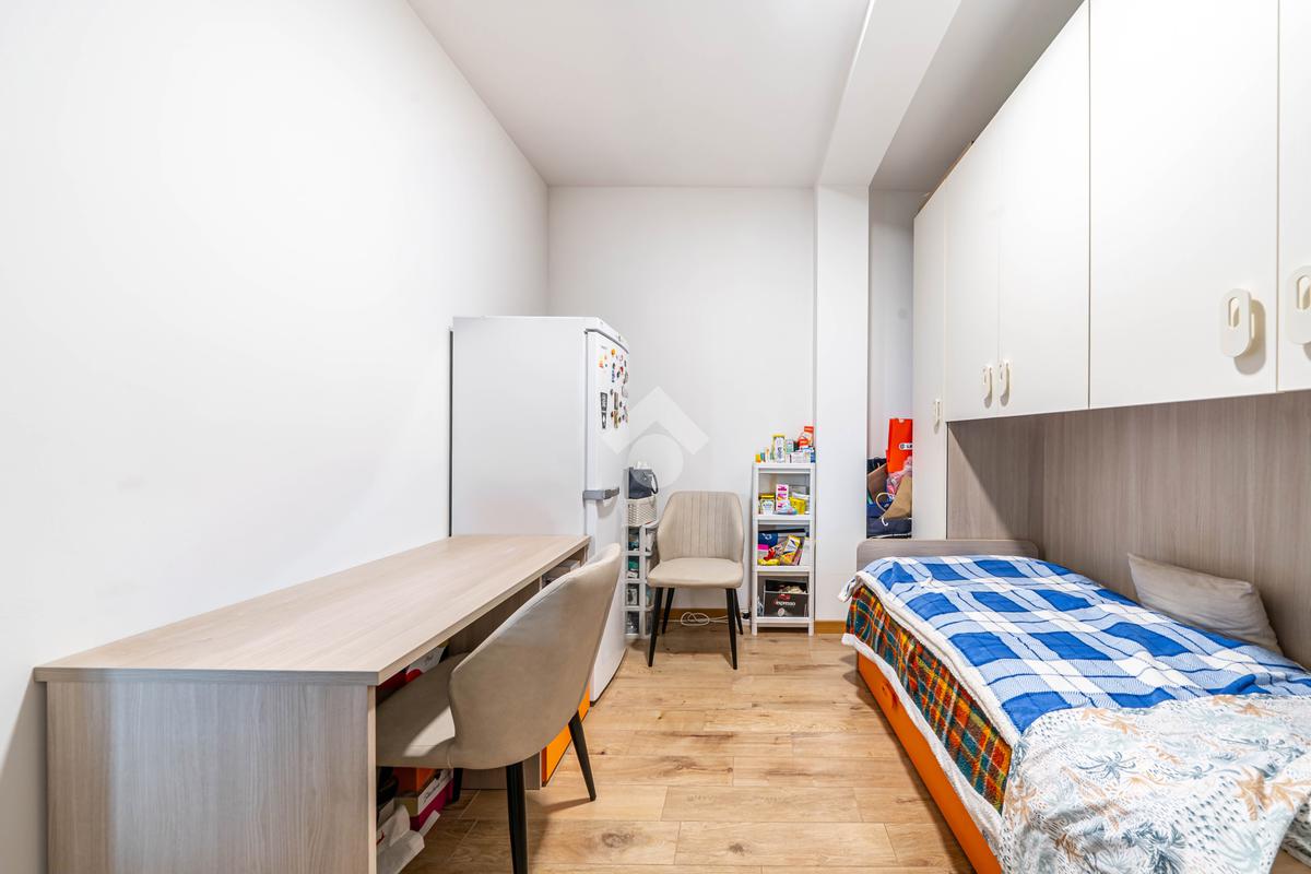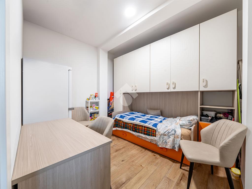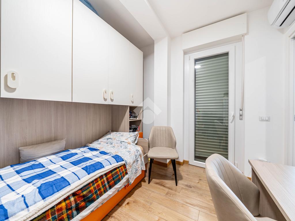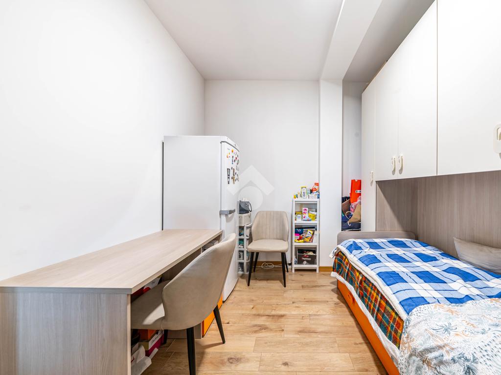 La seconda camera, anch’essa luminosa grazie all’esposizione favorevole, si presta perfettamente sia come cameretta sia come studio per chi lavora in smart working, offrendo un ambiente tranquillo e riservato.