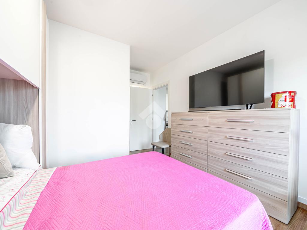 La camera matrimoniale, ampia e luminosa, è arricchita dalla presenza di una cabina armadio, elemento sempre più richiesto che consente un’organizzazione ottimale degli spazi. Il bagno, completo di tutti i servizi, si presenta in eccellente stato manutentivo, rifinito con materiali di qualità e linee moderne.